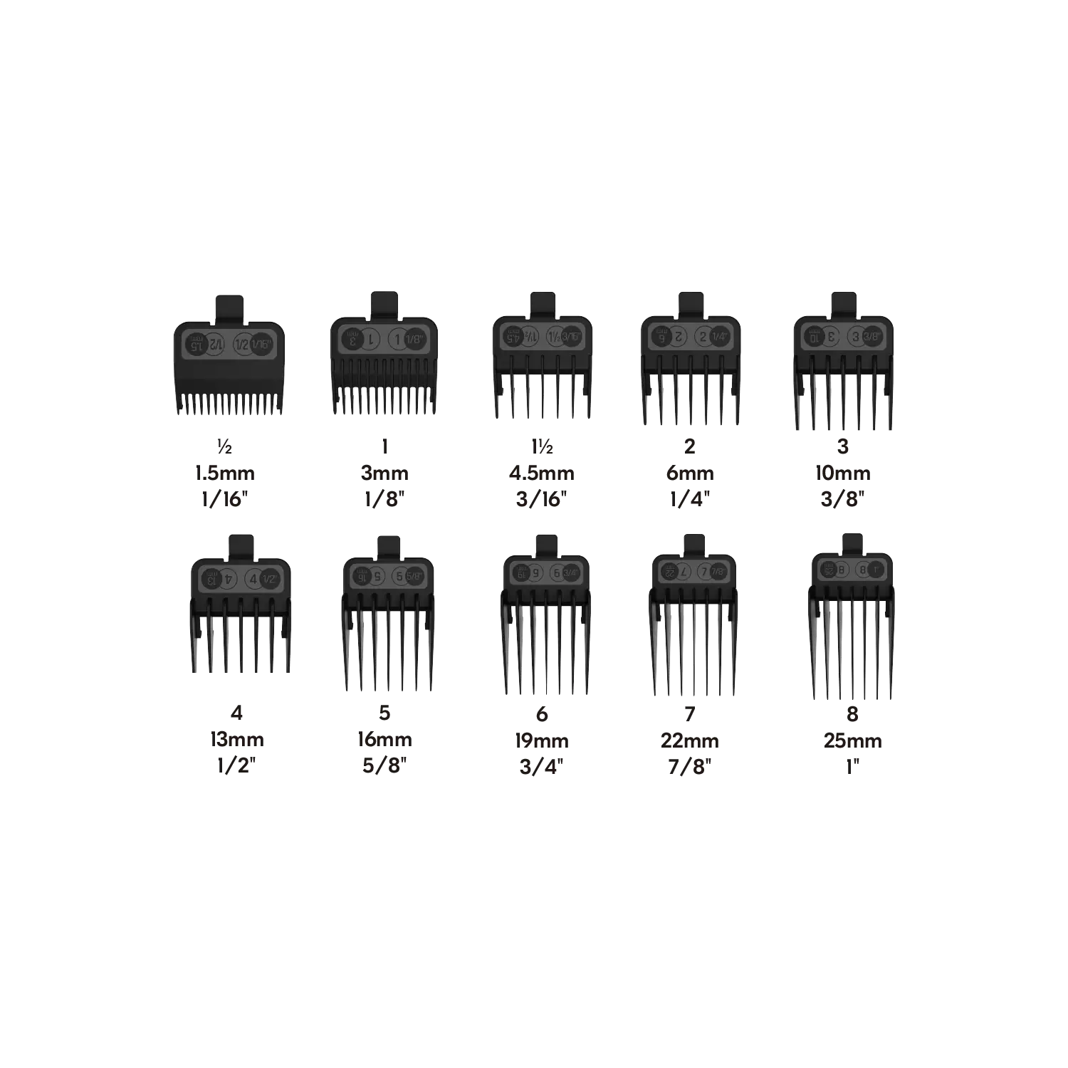 10 Aufsteckkämme von 1,5 mm bis 25 mm