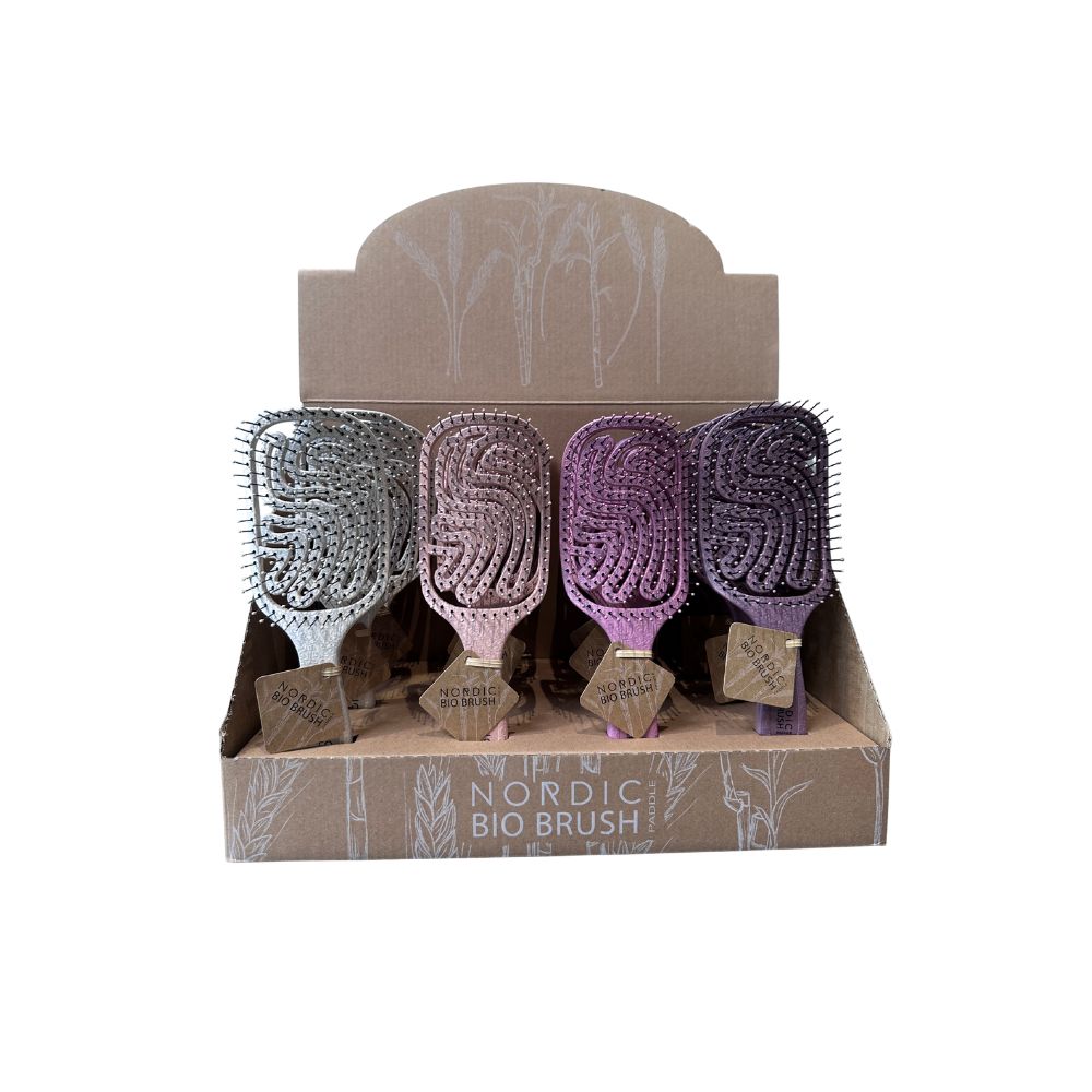 Das Nordic Bio Brush Paddle Mix Kit enthält 12 Bürsten und einen hochwertigen Aufsteller – perfekt für Friseursalons, Concept Stores oder den umweltbewussten Handel. Ein Must-have im Friseurbedarf für modernes, nachhaltiges Arbeiten.