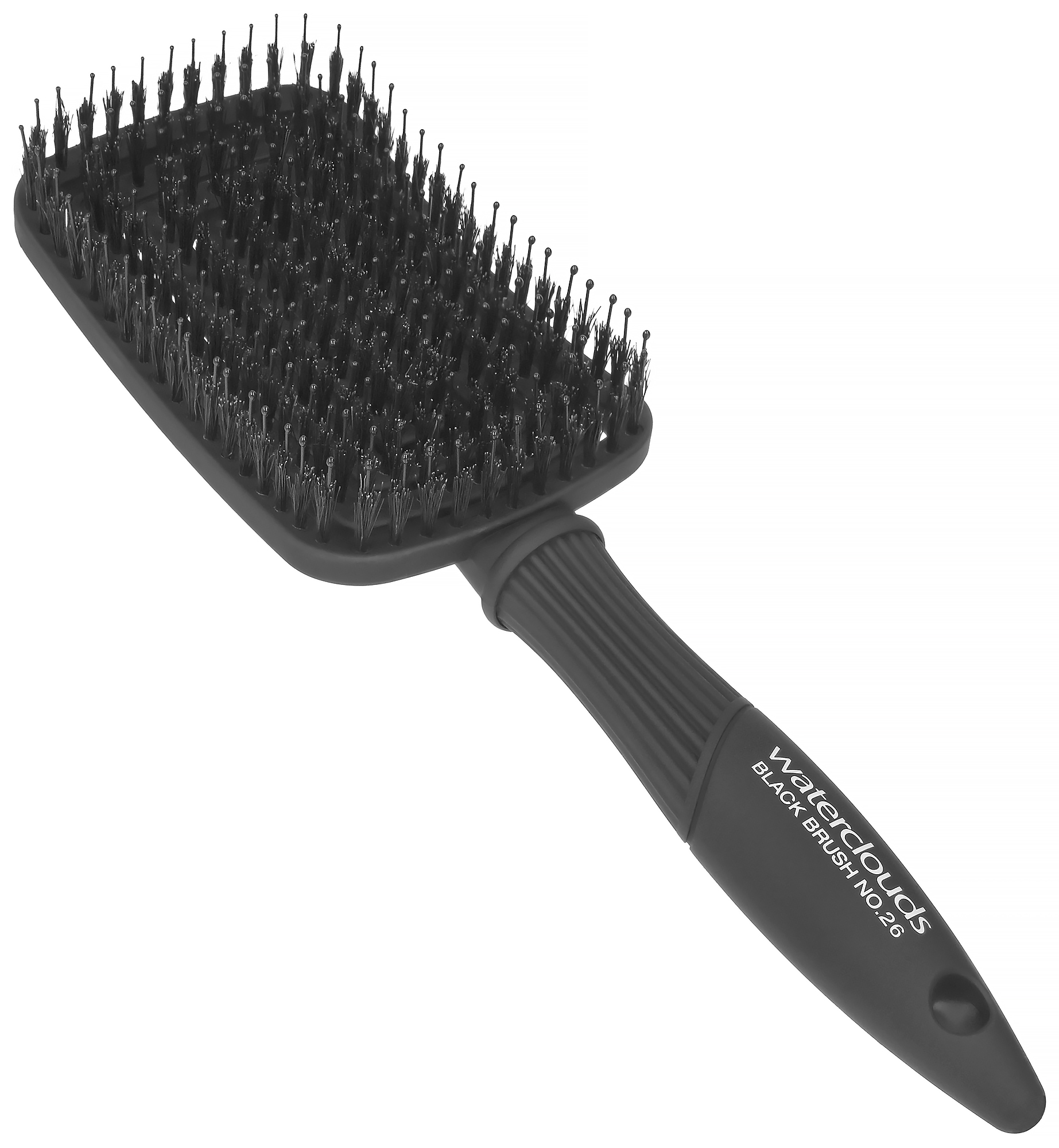 Die Black Brush No.26 von Waterclouds vereint innovative Technik mit natürlicher Pflege. Ihr ergonomisches, konkaves Design passt sich perfekt den Konturen der Kopfhaut an und sorgt für eine effiziente Bürstung mit weniger Zügen – für ein optimales Styling-Ergebnis bei allen Haartypen.